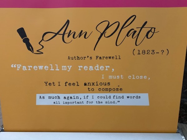 By Isla Sadzak Our memories are what shape our identities, and therefore, what we remember and share with others holds great significance. One important figure from Hartford, Connecticut during the 19th century was Ann Plato, a remarkable young Black woman who was an educator, an essayist, and a poet and one of the first Black... Continue Reading →